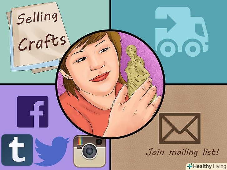 Розрекламуйте себе і свої товари. продаєте Ви товари особисто або онлайн, вам необхідно поширити інформацію про себе і своїх виробах. Коли люди набувають вироби, вони вважають за краще дізнаватися більше про те, хто їх виготовив.- Коли ви торгуєте особисто на ярмарку або в іншому місці, не забувайте роздавати покупцям професійно виготовлені візитні картки. Також спробуйте створити базу адрес покупців, однак, в даний час зазвичай більш доречно збирати адреси електронної пошти для подальших розсилок. [7]