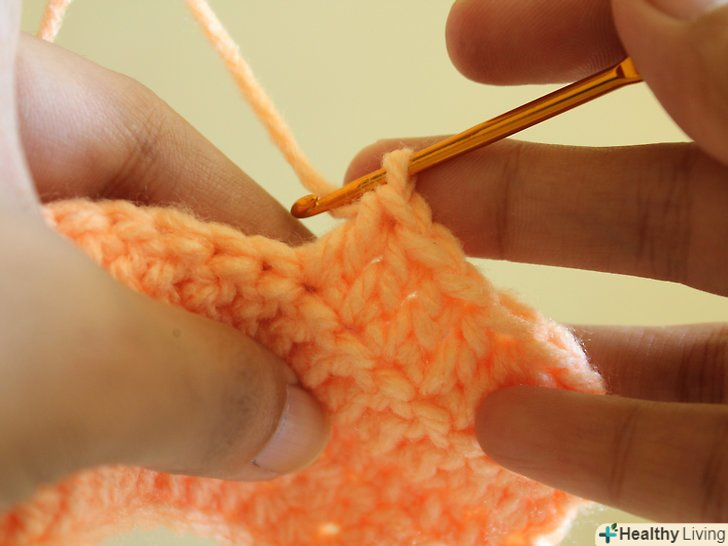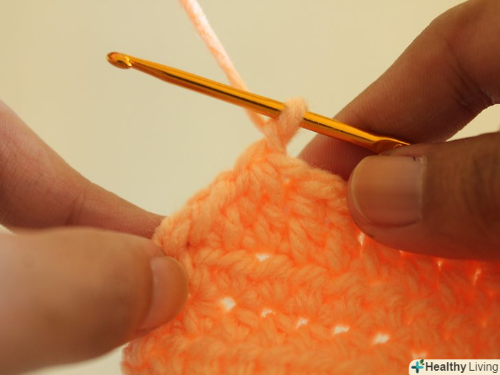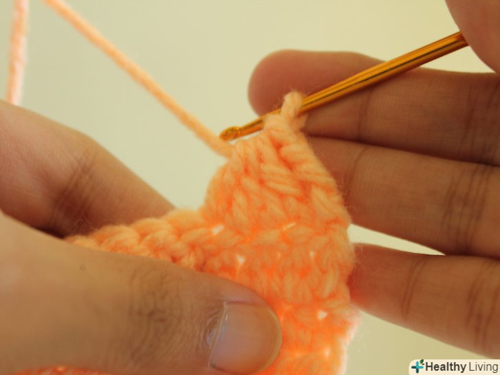 Продовжуйте в'язати відповідно до інструкцій малюнка. Зупиніться в певній кількості рядів з протилежного боку (це буде залежати від конструкції).