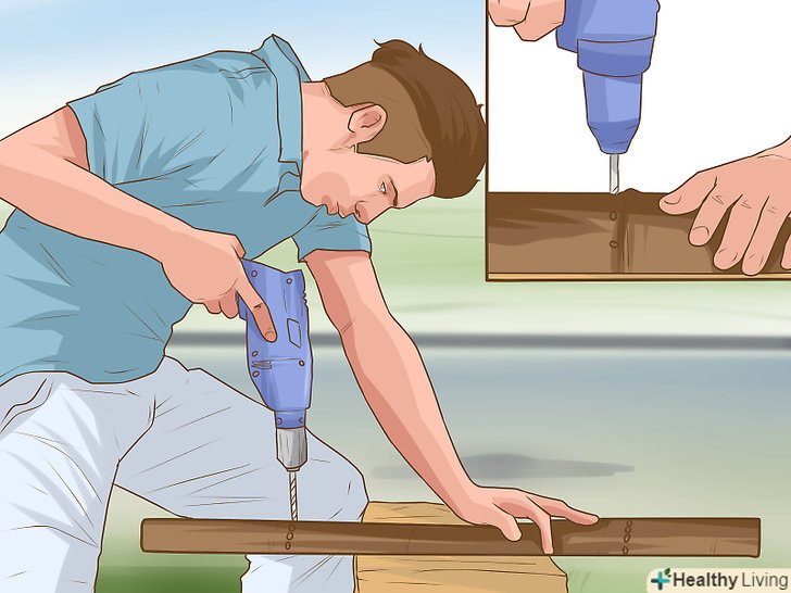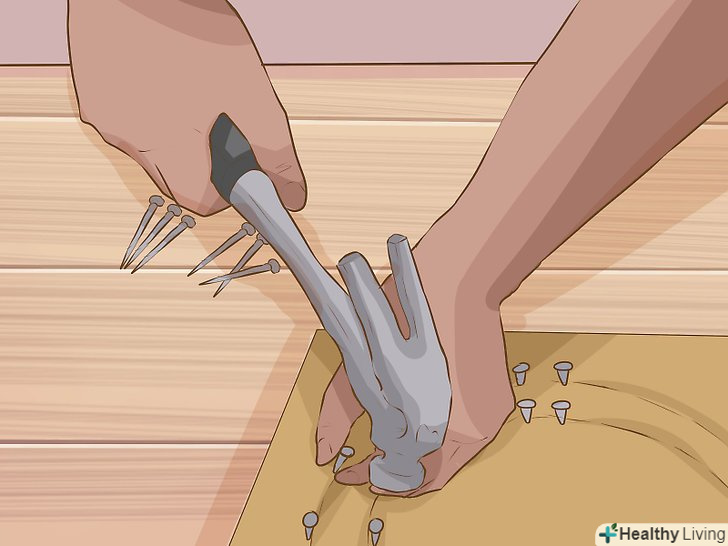Повторіть форму начерку цвяхами. використовуючи начерк як трафарет, вбийте в фанеру цвяхи, слідуючи Вашому ескізу. Цвяхи повинні відстояти один від одного на 2-3 сантиметри.- Вбийте другий ряд цвяхів. Другий ряд повинен йти паралельно першому, а відстань від ряду до ряду має бути трохи більше, ніж діаметр бамбукового стовбура.