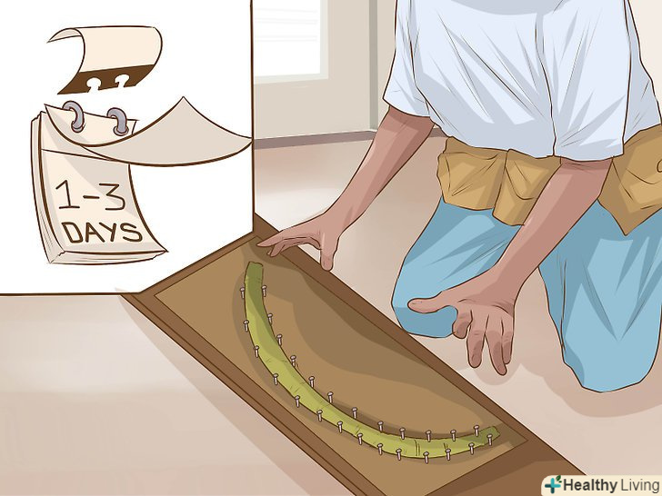 Зігніть бамбук. коли бамбукові палиці вимокнуть і стануть досить гнучкими, дістаньте їх з води і вкладіть в зроблену вами заготовку, вставивши між рядами цвяхів. Дайте бамбуку висохнути протягом 1-3 днів.- Ви можете перевірити, чи прийняв бамбук потрібну форму, вийнявши його з заготовки. Якщо бамбук не намагається розпрямитися - він висох досить і буде тримати форму. [2]
