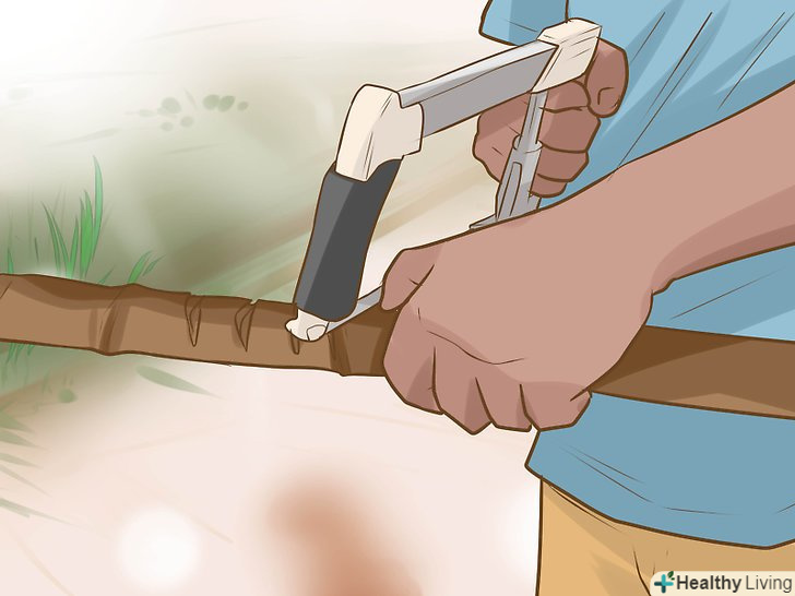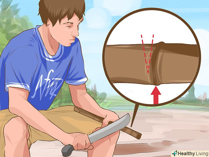 Надріжте бамбук. зробіть V-образні надрізи під перегородкою бамбукової палиці. Перегородки-це з'єднання на бамбуковому стовбурі, схожі на колінця, що розбивають стовбур на сегменти.- Робіть вузькі надрізи, якщо вам потрібно лише злегка зігнути бамбук. Робіть більш широкі надрізи, якщо вигин буде істотним.