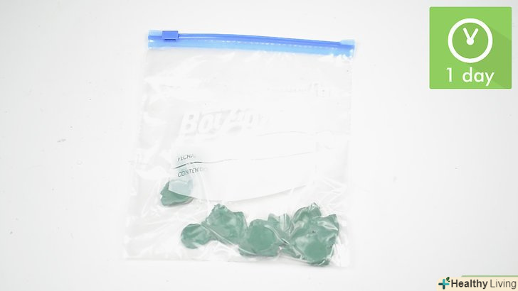 - Покладіть шматочки пластиліну в поліетиленовий пакет. переконайтеся в герметичності і водонепроникності пакета. Пакет із застібкою ідеально підійде, але ви також можете використовувати і звичайний пакет, просто щільно зав'язавши його.