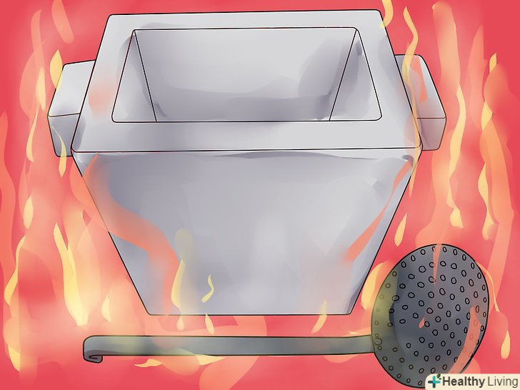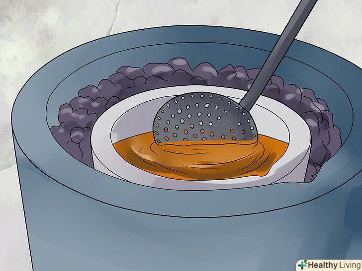 Топіть піч, поки латунь повністю не розплавиться. час, який потрібно на це, зазвичай залежить від потужності печі. Якщо у вас є пірометр для вимірювання високої температури, пам'ятайте, що латунь зазвичай повністю розплавляється при температурі 930ºC, але допустимі розбіжності до 30ºC (все залежить від типу латуні). Якщо у вас немає пірометра, переходите до наступного кроку, коли метал буде палати помаранчевим або оранжево-жовтим кольором або коли колір стане практично невиразним в денному світлі. [9]- Намагайтеся не вдихати дим, який з'являється з печі, і не забувайте про захисну екіпіровці.