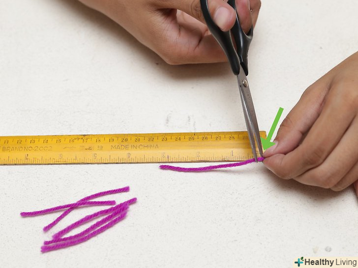 Наріжте пряжу відрізками довжиною по 5-7,5 см. кількість таких відрізків може бути різним. Якщо вам необхідні пишні вуса, наріжте більше відрізків. Якщо вам необхідні вуса тонший, візьміть всього кілька відрізків нитки. [13]- Коли всі відрізки будуть готові, складіть їх рівною стопкою.