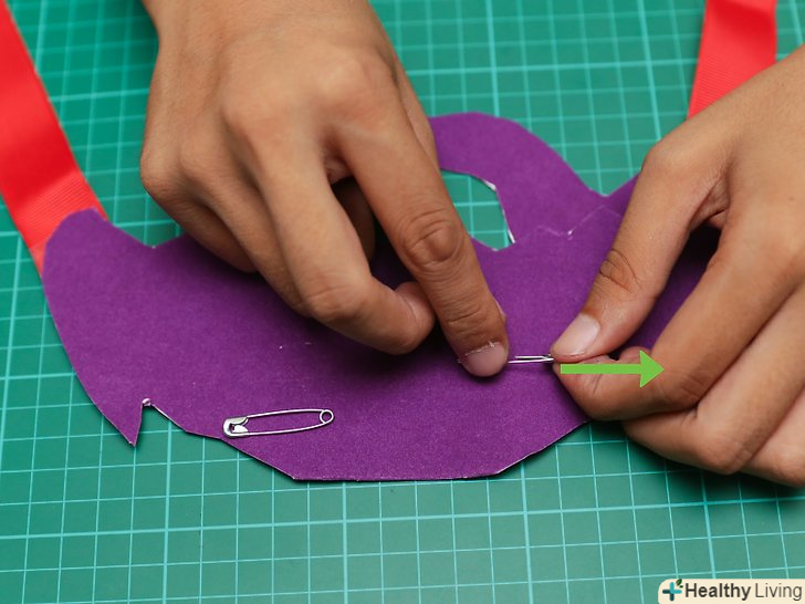 Вийміть шпильки. коли ви видалите шпильки, ваші вуса залишаться єдиним цілим, а стрічки будуть міцно на них триматися. [5]- Якщо стрічки не тримаються, ще раз прошийте ділянки, де вони з'єднуються з фетром, щоб закріпити їх.