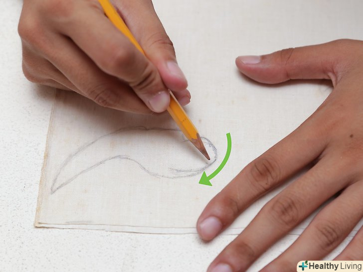 Намалюйте на тканині контури вусів. намалювати можна вуса будь-якої форми, яка вам подобається. За допомогою ручки або олівця обережно намалюйте на клаптику білої тканини контури необхідних вам вусів. [8]- Якщо обрана ручка (або олівець) не малює по тканині, вам доведеться взяти ручку з більш товстим кінчиком стрижня або з чорнилом темніше.