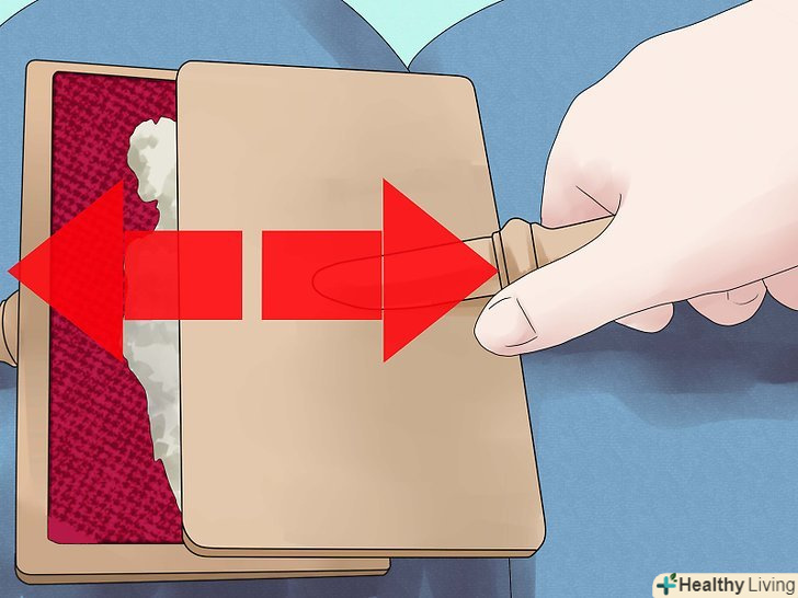 Проведіть порожній чесальной машинкою по поверхні з зубами машинки з шерстю на вашому лівому коліні. почніть з переднього краю і до кінця рухами по всій довжині.