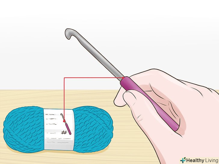 Виберіть в'язальний гачок. в основному Тип гачка залежить від того, які нитки ви вибрали. Розмір гачка залежить від товщини нитки. [2]- Розмір гачка повинен бути достатнім для того, щоб можна було зачепити нитку, але петлі не повинні бути занадто вільними.
