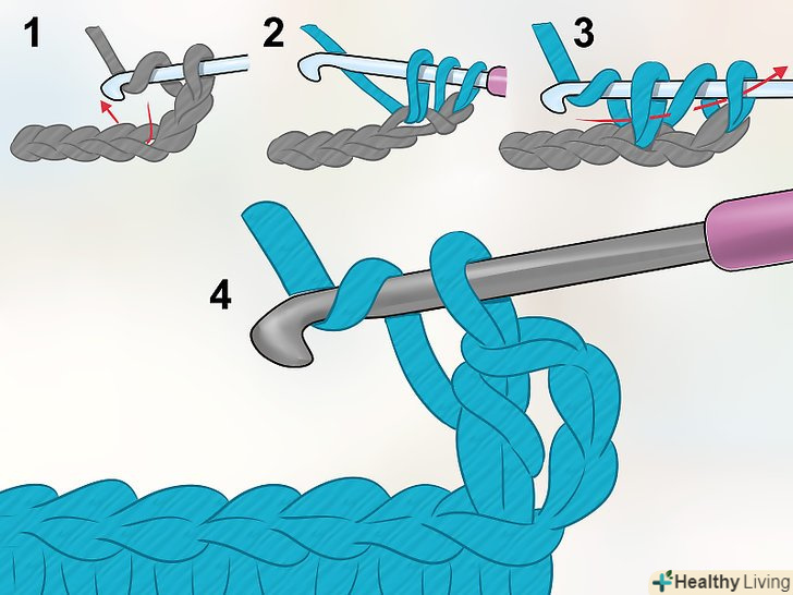 Зробіть першу ланцюжок, потім поверніть. Пам'ятайте, що перша ланцюжок не вважається стібком, якщо петлі на одному гачку. [6]