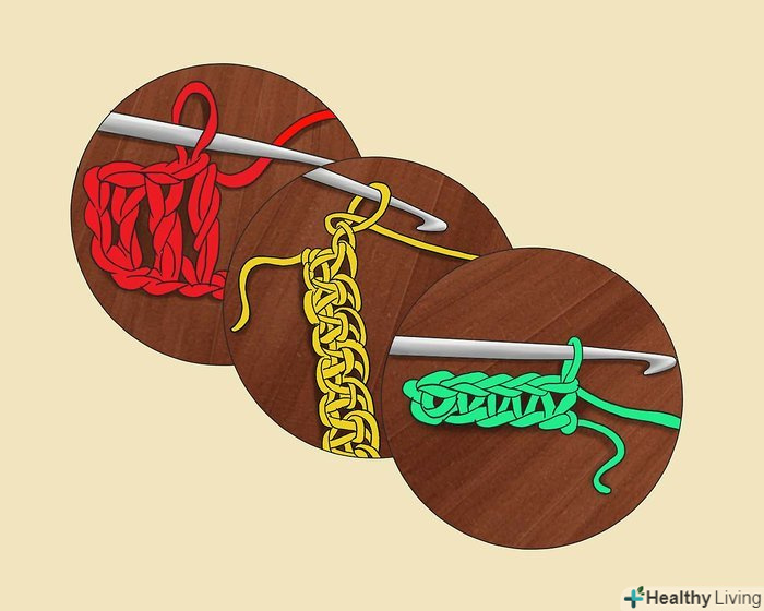 Навчіться робити інші петлі. коли ви відчуваєте, що можете впевнено в'язати ланцюжок, ви можете почати вчитися робити більш складні петлі.- Кожен раз, виконуючи нові петлі, вам знадобиться спочатку зв'язати довгу базову ланцюжок їх повітряних петель.