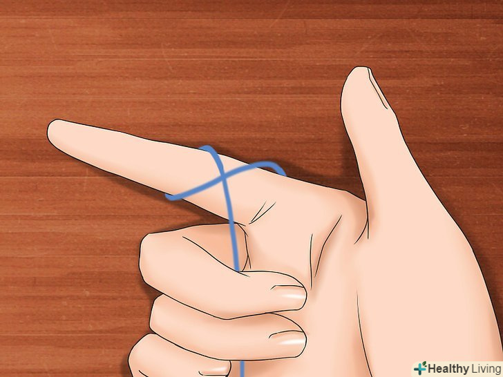 Обмотайте пряжу навколо пальців. [3] Візьміть вільний кінець пряжі лівою рукою і обмотайте його навколо двох або трьох пальців правої руки, створюючи петлю.- Почніть з боку долоні і обмотайте нитку навколо вказівного пальця.
