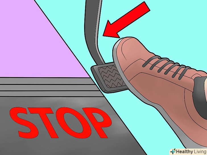 Коли Вам потрібно використовувати гальмо, щоб уповільнити рух, поставте ногу на педаль і плавно натисніть.часте натискання педалі гальма попередить водіїв навколо вас. З іншого боку, не гальмуйте в останню секунду. Дайте водіям позаду вас час, щоб помітити, що ви гальмуєте і зробити те ж саме. Гарний час, щоб почати гальмування, це помітивши автомобіль перед тим, коли ви гальмуєте. lt;