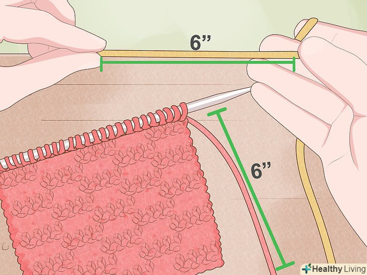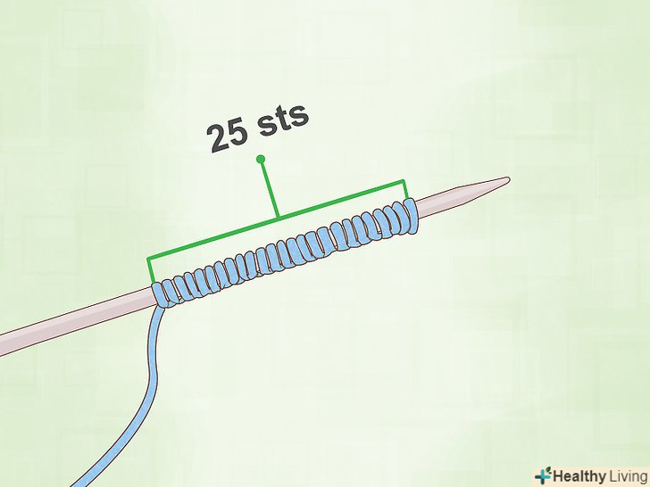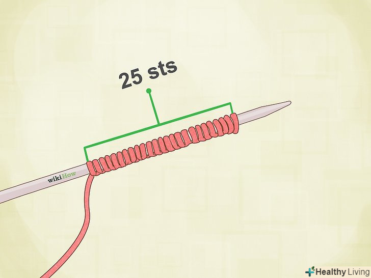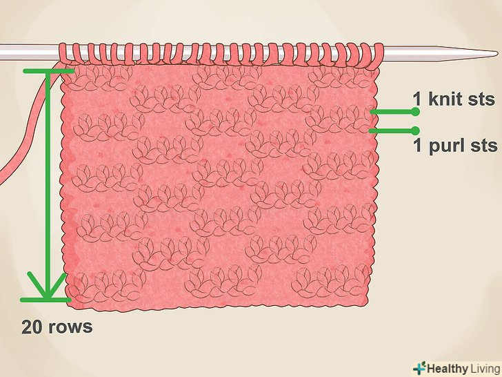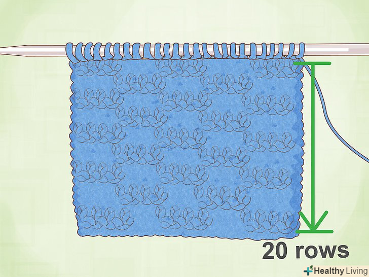 Пров'яжіть 20 рядів. можна використовувати панчішну або хусткову в'язку. Панчішна в'язка складається з чергуються рядів лицьових і виворітних петель. В'язання виходить гладким з одного боку і шорстким з іншого. У хусткової в'язці все ряди в'яжуть однаково (лицьовими або виворітними петлями). Таке в'язання має однакову шорсткою текстурою з обох сторін.