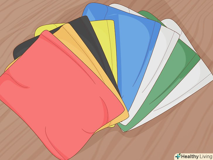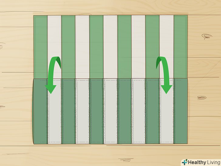 Наріжте тканину смужками. смуги повинні бути по 10 см в ширину і по 25 см в довжину. [5] Вам буде потрібно по 9-10 смуг кожного кольору.
