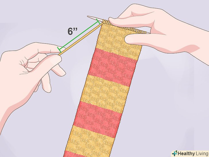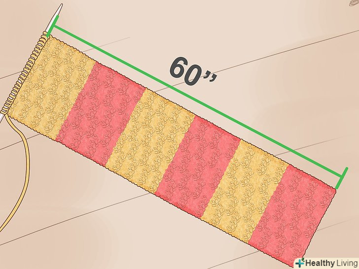Пров'яжіть 20 рядів. При в'язанні можна використовувати панчішну в'язку, в якій вам доведеться чергувати ряди з лицьових і виворітних петель. [1] в результаті шарф вийде гладким з лицьового боку і шорстким – з виворітного. Також можна використовувати хусткову в'язку, в якій всі ряди пров'язуються однаковими петлями (лицьовими або виворітними). [2] в результаті такої в'язки шарф придбає однакову шорстку текстуру з обох сторін.