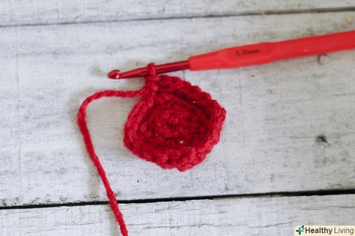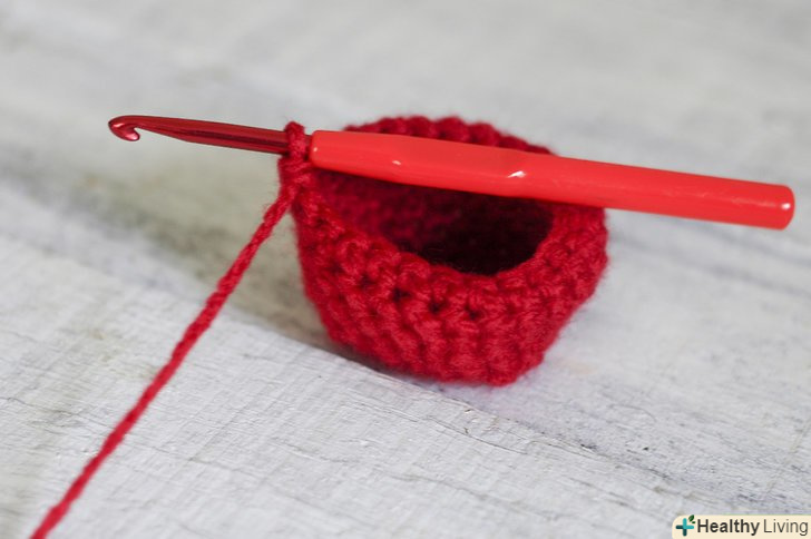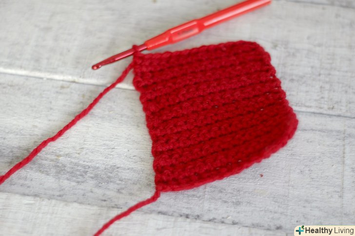 У наступному ряду пров'яжіть по 1 ст. б. н. в кожен ст. б. н. попереднього ряду. Коли ви дійдете до" кінця "або" кута", пров'яжіть 1 ст.Б. н., 1 в. п.і 1 ст. б. н. для того щоб сформувати кут; продовжуйте в'язати весь ряд таким же чином. Ваше завдання-збільшити кількість петель з кожного боку на 2.