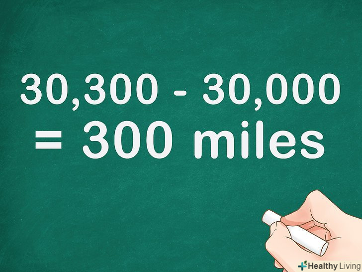 При повторній заправці перевірте одометр.щоб побачити, яку відстань ви проїхали, відніміть від старого значення поточне. Запишіть різницю між двома показаннями одометра. Якщо при першій заправки бака показання одометра було 48 280 км, а при повторній заправці – 48 763 км, тоді ви проїхали 482,8 км на одному баку.