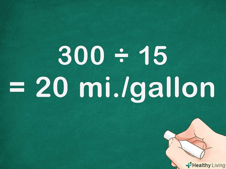 Розділіть відстань, яку ви проїжджаєте на місяць, на кількість кілометрів, яке автомобіль проїжджає на одному літрі палива (якщо пробіг вашого автомобіля – 48 280 км і йому 40 місяців, тоді ви проїжджаєте приблизно 1 207 км на місяць). у цьому гіпотетичному прикладі, щоб дізнатися, скільки палива ви спалюєте на місяць, розділіть 1207 км на 75,7 літрів: 142 літра.