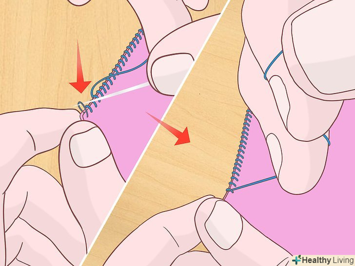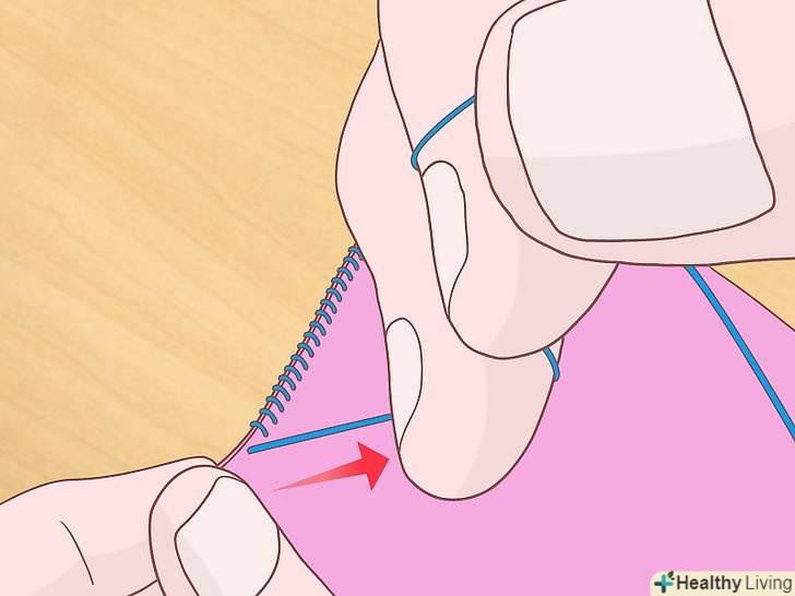 - Всі стібки слід затягувати приблизно однаково з тим, як ви затягнули перший стібок. Краї деталей необхідно закріплювати досить надійно, щоб між ними не залишалося просвіту, але і не з'являлося ніяких збірок по шву. [14]
