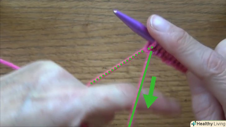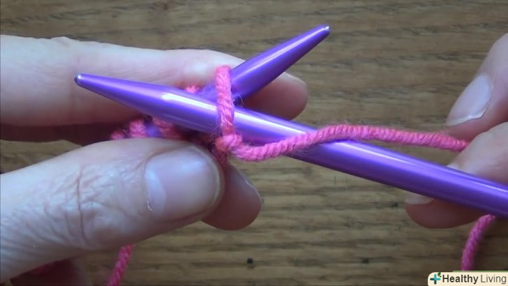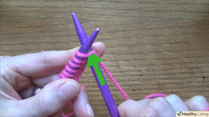 - Оберніть робочу нитку навколо кінця робочої спиці проти годинникової стрілки. при необхідності можна допомогти собі правою рукою, але з досвідом ви навчитеся робити це тільки робочої спицею. Зверніть увагу, що в даному випадку нитка йде навколо спиці проти годинникової стрілки, так що її кінець буде звисати з зовнішньої сторони спиці, а не з внутрішньої. [9]