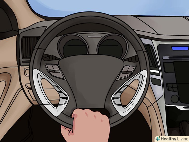 Обхопіть руками нижню частину рульового колеса.повертаючи кермо з такого положення, вам буде простіше управляти причепом. Робіть все повільно. Рекомендується вийти з автомобіля і переконатися, що ви рухаєтеся в правильному напрямку. Не варто намагатися зробити все з першого разу – краще пожертвувати самолюбством, ніж розбити причіп.[7]- Постарайтеся зробити так, щоб автомобіль і причіп не "склалися" один з одним (на зразок складного ножа). Для цього не варто поспішати. Як правило, зайняти правильне положення можна одним плавним маневром. У більшості випадків вам доведеться зупинитися і подати трохи вперед, щоб домогтися правильного розташування причепа щодо автомобіля.