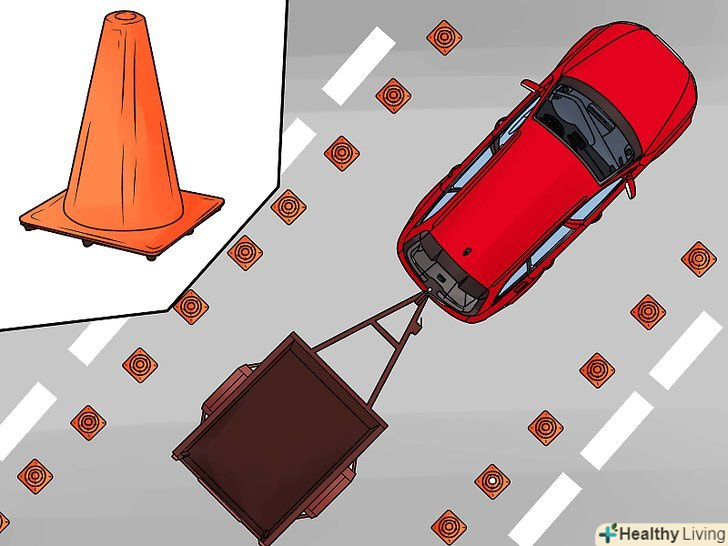 Попрактикуйтесь на порожній стоянці.купуйте дорожні конуси, щоб обмежити ними певну ділянку місцевості. Вчіться рухатися заднім ходом з довгим причепом, а потім переходите на більш короткий причіп. Практикуючись, робіть все повільно.[2] короткі Причепи є більш маневреними, тому при русі заднім ходом з ними важче впоратися. Довгим причепом легше керувати, але з ним ви витратите більше зусиль, щоб обігнути кут.