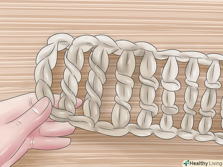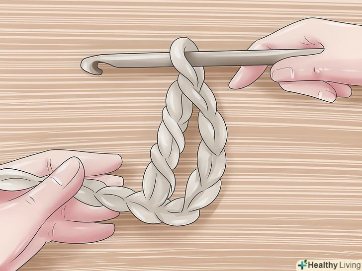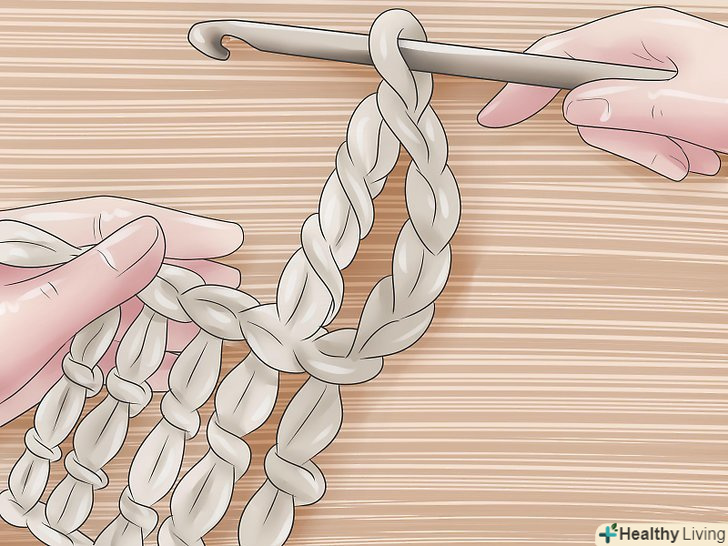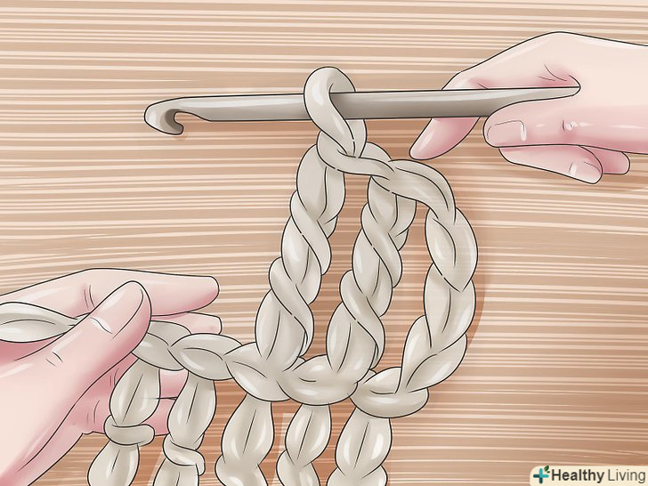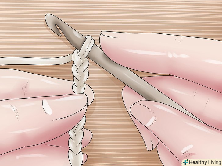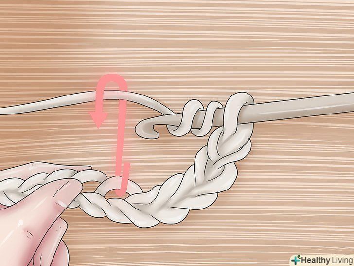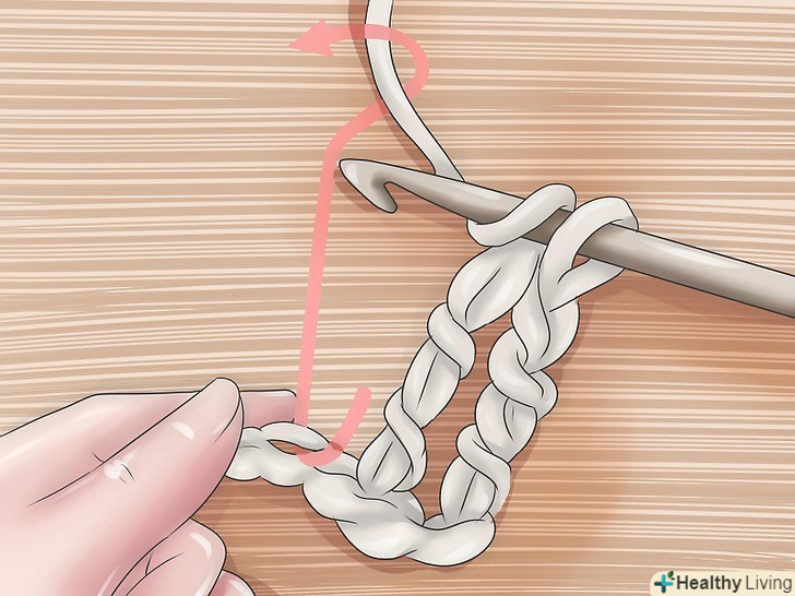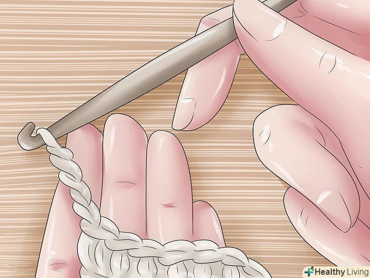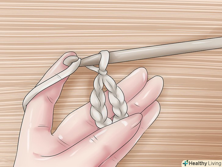 Петлі підйому. [3] Зв'яжіть короткий ланцюжок з п'яти петель підйому.- Петлі підйому дозволяють подовжити ряд до закінченої висоти, наступного ряду і довжина цього ланцюжка залежить від типу петель, які ви будете використовувати в цьому ряду. Для ряду стовпчика з двома накидами, вам потрібна ланцюжок з п'яти петель підйому.