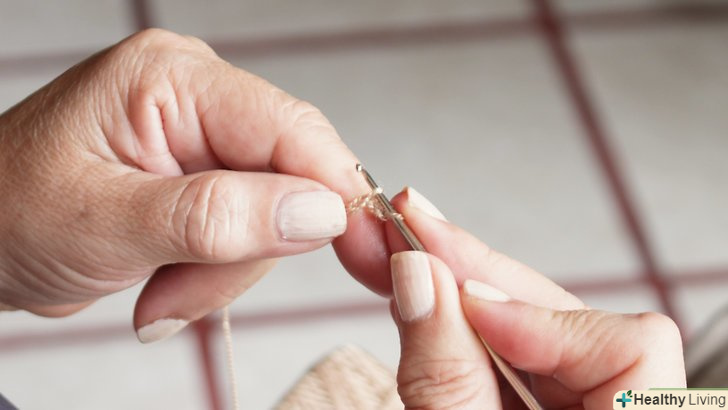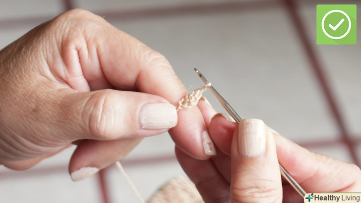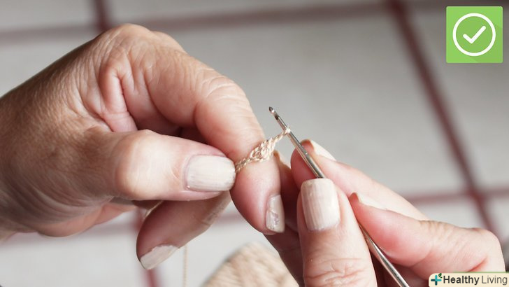 Введіть гачок в потрібну петлю підстави. зазвичай стовпчик робиться в найближчу до гачка петлю, а якщо ви тільки набрали першу ланцюжок повітряних петель, то в четверту петлю від гачка. Звіртеся зі своєю схемою.- Накиньте пряжу на гачок і поверніть головку гачка до себе.