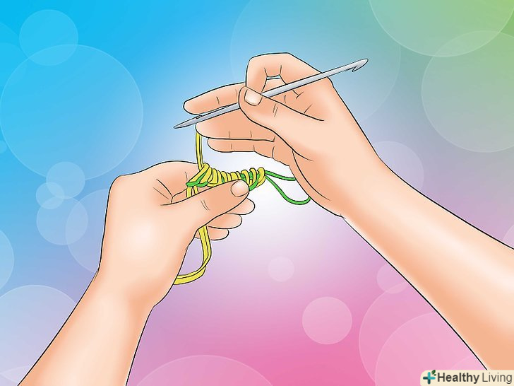 - Обмотайте закріплений кінець пряжі навколо взятого ділянки, щоб створити петлю.