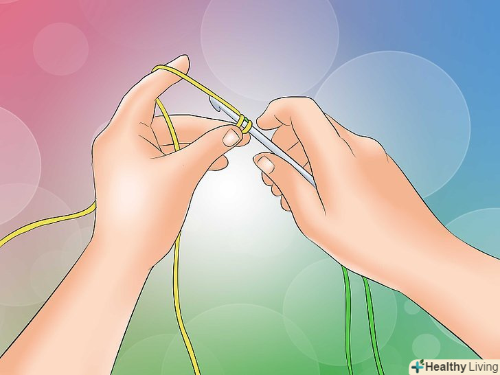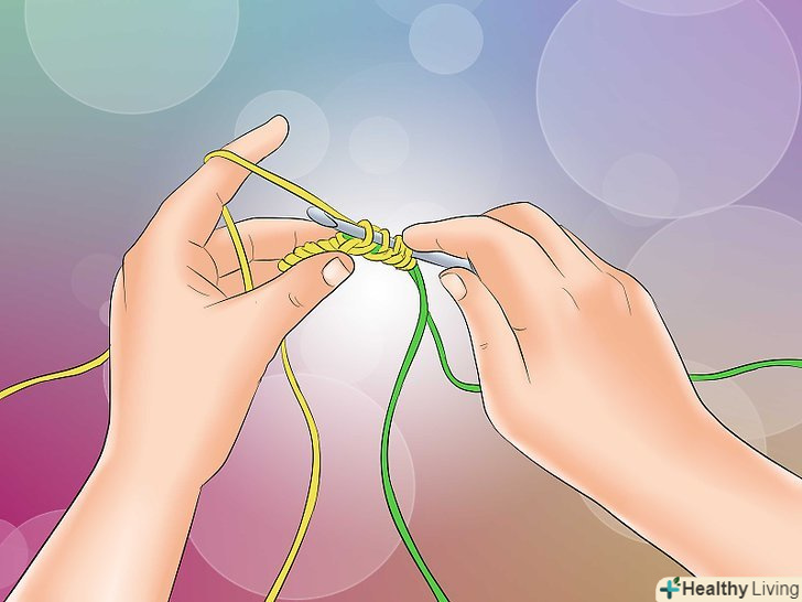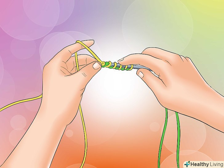 - Вам, можливо, доведеться відтягувати петлі вниз по гачка в процесі їх створення. В процесі роботи, деякі з цих петель можуть звалитися з краю гачка на іншу сторону шнура.