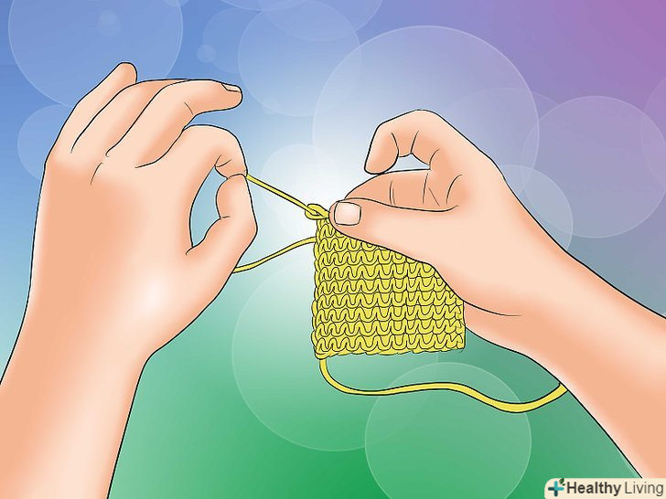 Повторіть стільки разів, скільки потрібно. продовжуйте створювати аналогічні ряди лицьових петель, поки робота не досягне бажаної довжини.- Досягнувши кінця ряду, поверніть нукінговий гачок і витягніть шнур з попереднього ряду. Потім пересуньте всі петлі поточного ряду з гачка на шнур.
