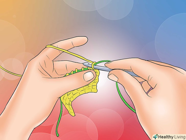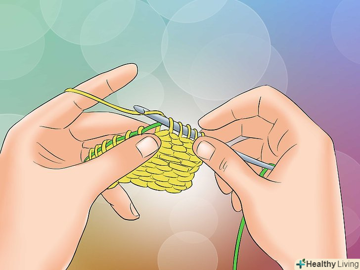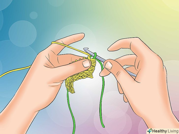 Продовжуйте робити стібки. вставте гачок в найближчу до нього петлю. Повернувши гачок обличчям вниз, зачепитеся їм за пряжу і витягніть її крізь іншу сторону петлі. [1]- Дана дія повинна додати до вашого гачка другу петлю. Вам потрібно буде утримувати цю петлю на гачку в процесі створення залишилася основи з ланцюгових стібків.