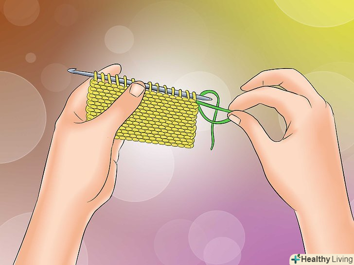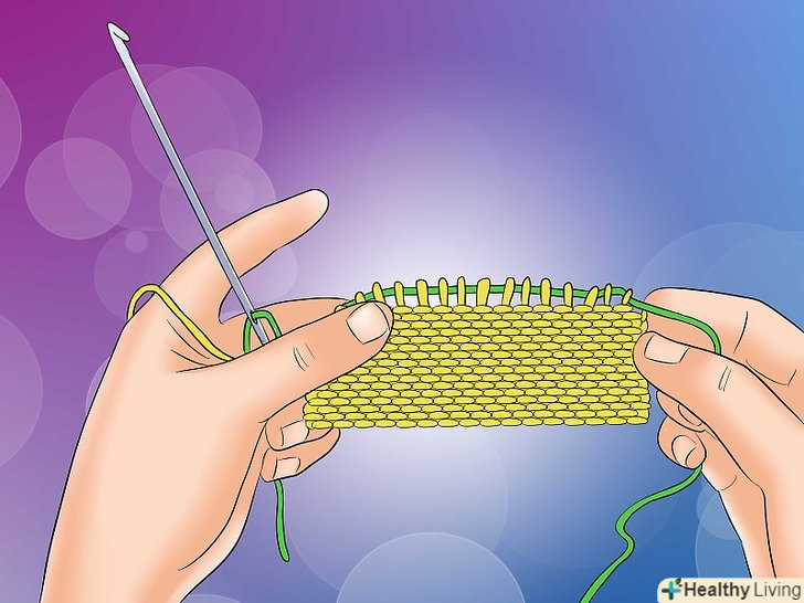 Протягніть пряжу крізь петлю. спіймайте пряжу загнутим наконечником, а потім протягніть її крізь петлю в початок ряду.- Під час в'язання тримайте робочу пряжу попереду (всередині) ряду.