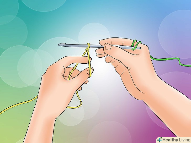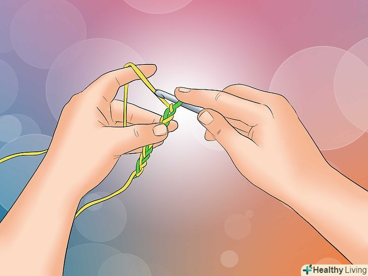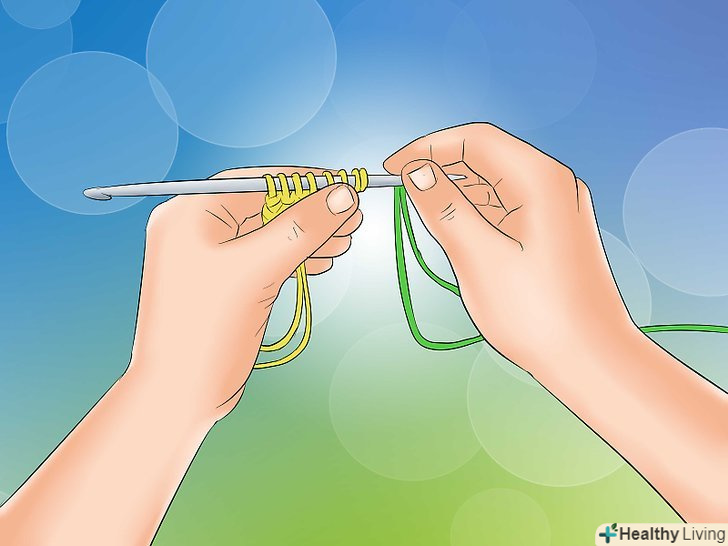 Створіть основу з ланцюгових стібків. Зв'яжіть кілька ланцюгових стібків, які послужать в якості основного рядка для вашої в'язки.- Підтримуйте однаковий натяг пряжі під час роботи, щоб ваші ланцюгові стібки не відрізнялися один від одного.