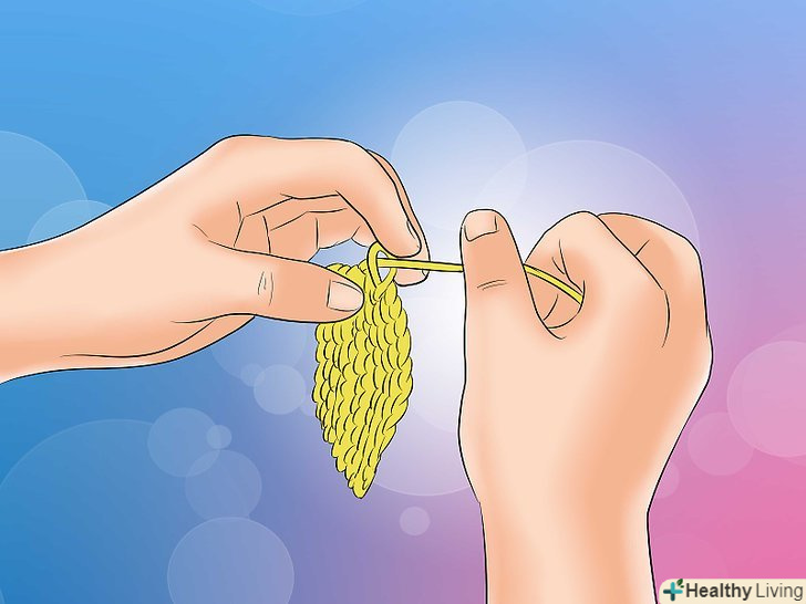 Зв'яжіть останній стібок. досягнувши кінця ряду, обріжте пряжу, залишивши приблизно 10 см на кінці. Протягніть цей кінець через останню петлю на гачку і вплетіть будь-які надлишки в стібки, щоб приховати їх.- Після цього кроку на гачку не повинно залишитися пряжі.