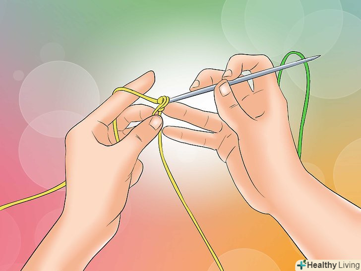 Пропустіть нитку через вушко. вставте нейлоновий шнурок у вушко гачка для нукінгу, протягуючи приблизно 15 см шнурка на іншу сторону.- Гачок для нукінгу виглядає як звичайний в'язальний гачок, лише з тією різницею, що на іншому кінці гачка є вушко. Саме через це вушко ви і будете протягувати шнурок.