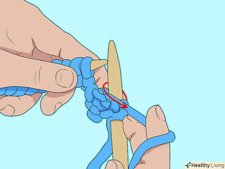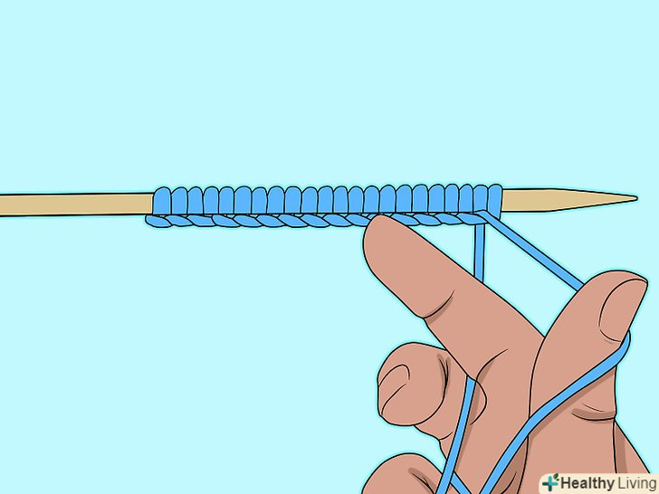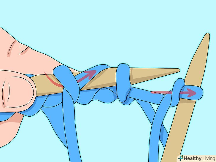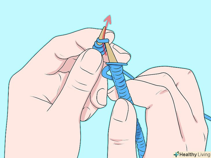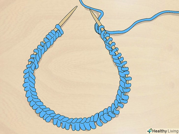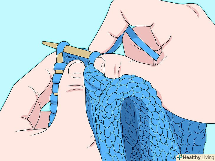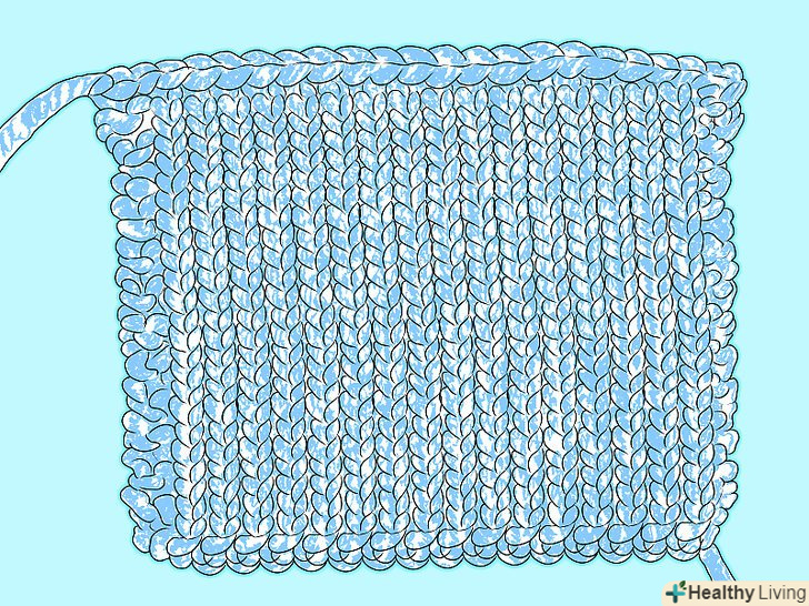 Повторюйте кроки 2 і 3, поки полотно не досягне потрібної довжини. порівнюйте лицьову сторону з першою фотографією статті, щоб переконатися, що ви в'яжете правильно.- Зверніть увагу: ви можете провязать перший ряд виворітними петлями, а другий – лицьовими. Якщо все виворітні петлі будуть звернені на одну сторону, а все лицьові – на іншу, у вас все одно вийде панчішна в'язка.