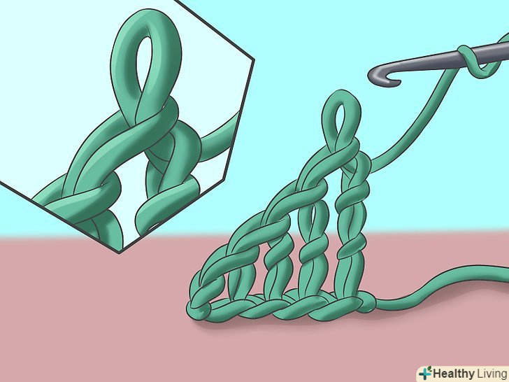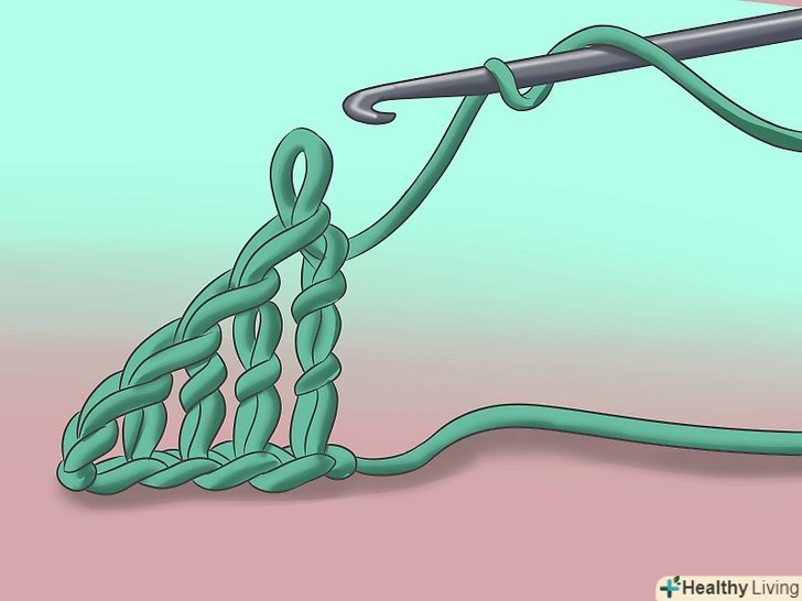 Пров'яжіть ряд стовпчиків за своїм вибором по всій довжині ланцюжка. щоб зробити Стовпчик без накиду , введіть гачок в другу від нього петлю ланцюжка. Візьміть нитку і витягніть; на гачку вийде дві петлі. Знову захопіть нитку і протягніть її через обидві петлі. [2]- Якщо ви хочете в'язатиНапівстовпчиками з накидом, почніть з четвертої петлі ланцюжка. Накиньте нитку на гачок. Введіть гачок в третю від нього петлю ланцюжка. Візьміть нитку і витягніть; на гачку вийде три петлі. Знову захопіть нитку і протягніть її відразу через всі три петлі на гачку.