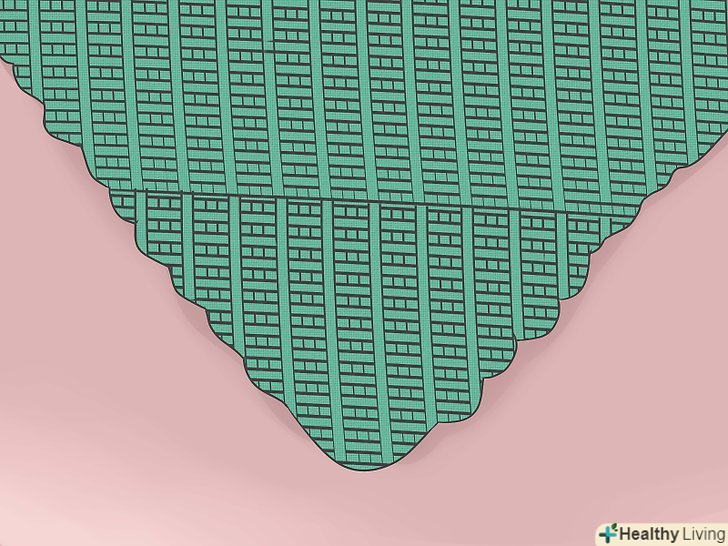 Зменшіть по одному стовпчику з кожного боку. збавляти потрібно симетрично, щоб шаль придбала форму трикутника. Вам знадобиться дві убавкі на ряд, по одній з кожного боку. [3]- Щоб зменшити один стовпчик, вам потрібно пропустити заключний крок, залишивши на гачку дві петлі. В'яжіть наступний стовпчик як зазвичай, але петлі від попереднього стовпчика повинні залишатися на гачку. Закінчуючи другий стовпчик, простягніть нитку через всі петлі на гачку, з'єднавши таким чином "верхівку" першого і другого стовпчика.