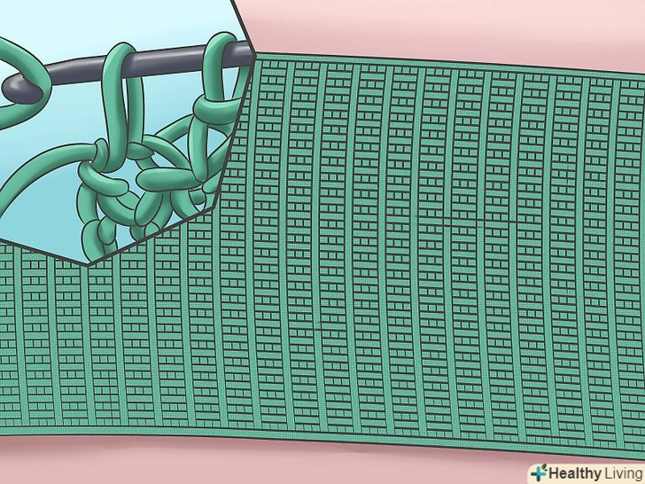 В'яжіть ряд за рядом туди і назад, не збавляючи і не додаючи. Вам потрібно, щоб полотно зберігало прямокутну форму. Якщо ви випадково пропустите стовпчик або петлю, розпустіть в'язання до того місця, де помилилися, або спробуйте включити пропущені стовпчик в візерунок. [6]- Найкраще порахувати петлі початкової ланцюжка і потім рахувати їх в кожному ряду в процесі роботи. Так ви зможете відразу виявити, якщо пропустите петлю.