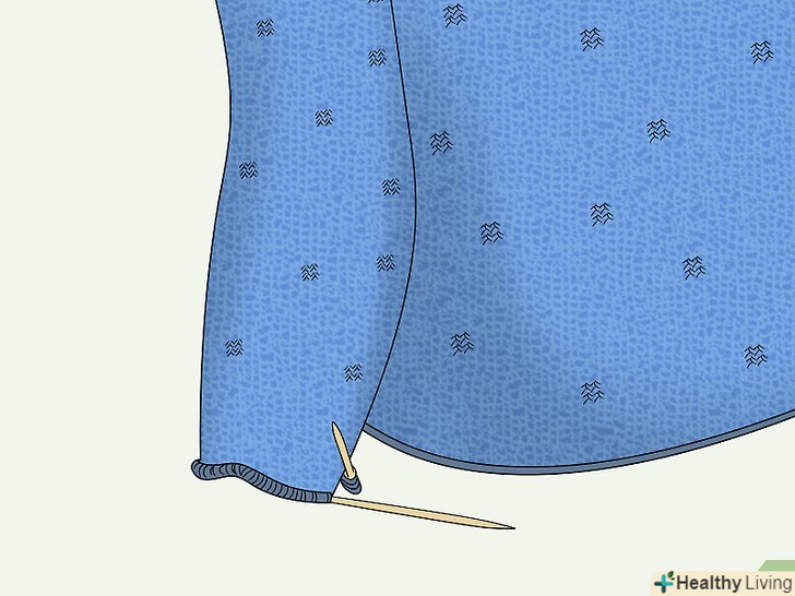 Закрийте петлі останнього ряду. коли ви зв'язали необхідну довжину, потрібно закрити петлі. Використовуйте той же стандартний спосіб для закриття петель, який ви використовували для пройми рукава. Зараз потрібно закрити весь ряд. [11]