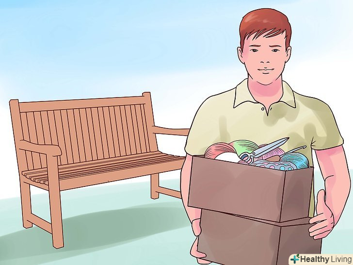 Візьміть все, що вам може знадобитися. крім вашого в'язаного твору та інструментів для його складання, варто захопити з собою пару помічників.- Щоб обернути об'єкт в'язаним графіті, вам будуть потрібні хомутна голка, пряжа відповідного кольору і ножиці. Якщо ви збираєтеся працювати в килимовій техніці або вишивати хрестиком, візьміть інструменти, які зазвичай потрібні для такого рукоділля.