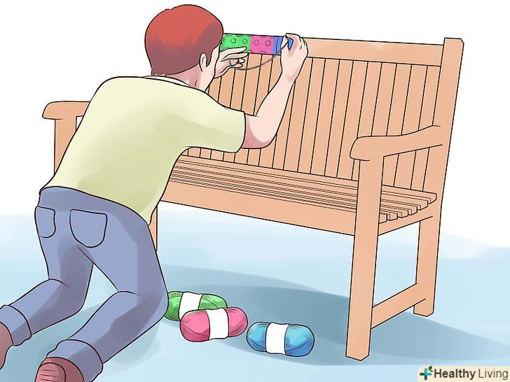 - Переконайтеся, що зможете закріпити в'язання на об'єкті, щоб воно не впало. На дереві горизонтальні гілки не дадуть йому зісковзнути вниз. Для дорожнього знака вам, однак, буде потрібно придумати, як закріпити додаткові нитки на стовпчику, протягнувши їх в отвори або обмотавши навколо нього, щоб ваше твір не впало.