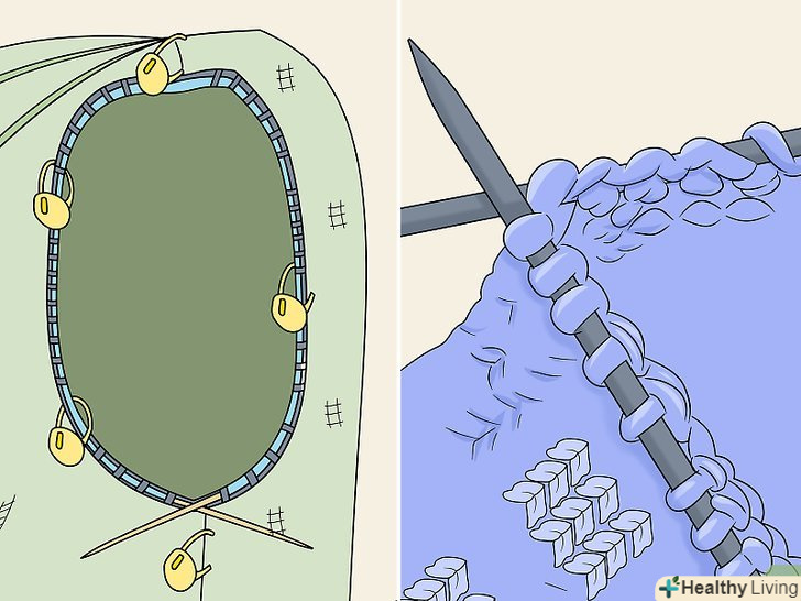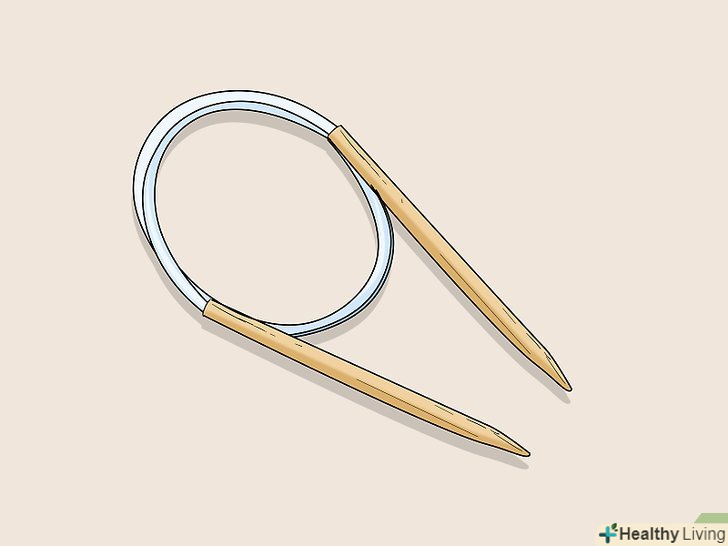 Поекспериментуйте з круговими спицями. кругові спиці являють собою дві спиці, з'єднаних дротяним або нейлоновим шнуром. Вони найкраще підходять для круглого в'язання, наприклад, шапок, круглов'язаних шарфів і светрів. Однак, їх також можна використовувати для в'язки великих деталей, виконуваної по рядах, щоб вмістити всі петлі на спицях (наприклад, для в'язки пледів). [8]- Кругові спиці також можуть мати різні діаметр і довжину з'єднує їх дротяного або нейлонового шнура. Часто зустрічаються кругові спиці наступної довжини: 40 см, 50 см, 60 см і 80 см. [9]