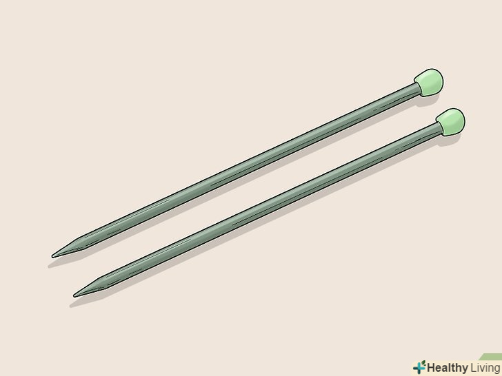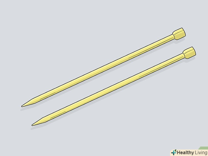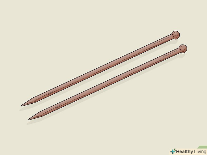 Візьміть звичайні прямі спиці. звичайні прямі спиці з одного кінця загострені, а з іншого можуть бути тупими, розширеними або мати круглий набалдашник, який не дає петлям зісковзувати. [6] вони найкращим чином підходять для тих проектів, в яких в'язка йде прямими рядами, наприклад, для шарфів, покривал і серветок. Такі спиці можуть мати найрізноманітніші діаметр і довжину, тому ви завжди зможете підібрати собі відповідну пару спиць для виконання конкретного завдання.- Вам можуть запропонувати прямі спиці наступної довжини: 18 см, 25 см, 30 см і 35 см. [7]