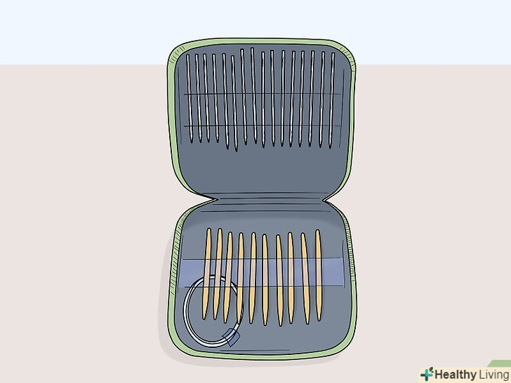 Зверніть увагу на змінні Набори спиць. якщо ви вважаєте, що вам можуть знадобитися різні спиці, то можна подумати про придбання змінного набору спиць. Такий набір буде включати в себе спиці різних видів, елементи яких можуть з'єднуватися між собою різним чином з метою виконання конкретного завдання. При необхідності такі спиці можна з'єднувати в кругові шнуром різної довжини або використовувати подовжують елементи, щоб отримати довші прямі спиці. [11]- Пам'ятайте, що такі набори коштують досить дорого, але при цьому вони обійдуться вам дешевше окремої покупки всіх найрізноманітніших розмірів і видів спиць, які можуть вам знадобитися.