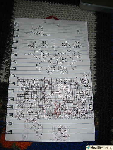 Записуйте послідовність дій. Якщо ви хочете в майбутньому поділитися схемою з друзями, викласти її в інтернет або просто в'яжете парні предмети (шкарпетки, рукавиці), робити нотатки необхідно. Вони можуть бути короткими або докладними – головне, щоб ви могли розібрати їх згодом і, якщо потрібно, зробити зрозумілими іншим в'язальницям.