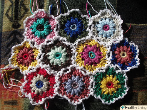- якщо з'єднати кілька квадратів, можна зробити покривало або скатертину.Набір шестикутних мотивів, з'єднаних краями між собою.