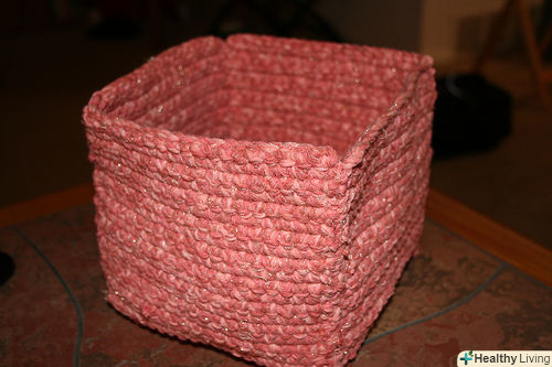 В'яжіть за різноманітними схемами, але не просто зчитуйте їх зі сторінки; постарайтеся зрозуміти, як з стовпчиків і петель складається форма і візерунок вироби. потім ви зможете використовувати ці елементи для розробки власної схеми.- звертайте увагу на те, як виходять певні деталі, особливо базові форми, які ви обов'язково будете використовувати. Наприклад, для отримання рівного прямокутного полотна вам потрібно пров'язувати петельки для підйому в кінці кожного ряду стовпчиків. Стовпчики без накиду вимагають однієї петлі для висоти ряду, стовпчики з накидом – трьох петель. [1] Вам також потрібно навчитися в'язати по колу і по спіралі. Як ви вважаєте, ви могли б зв'язати коробку з квадратним дном і розширюються догори стінками? А кошик циліндричної форми?Ця коробка складається з п'яти прямокутників, зшитих між собою.