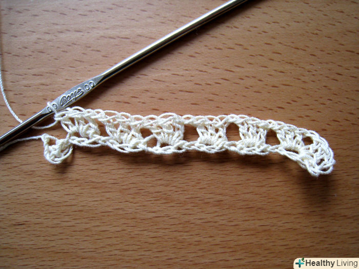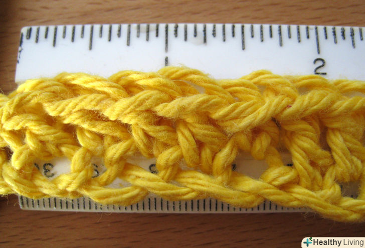 Навчіться розраховувати кількість стовпчиків і щільність в'язання. Ширина залежить від товщини ниток, розміру гачка і техніки в'язання. В даному прикладі СІМ стовпчиків відповідають 5 см. знаючи цей масштаб, ви зможете зробити наступне.- Визначити і перевірити, скільки петель (стовпчиків) вам потрібно. Пров'яжіть деяку кількість, приміряйте або виміряйте виріб і додайте в разі потреби для досягнення потрібного розміру.